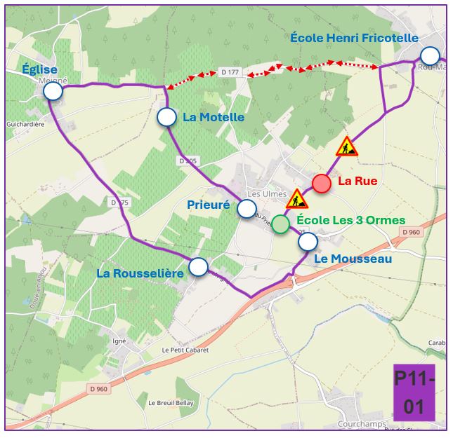 Ligne scolaire P11-01: Travaux Les Ulmes
